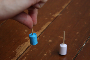 2. 紙テープの先っちょをマッチの軸にセロテープで止めます。