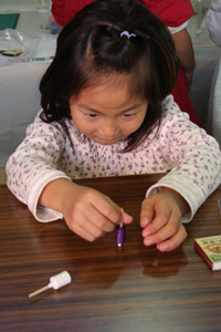 Img_9604 紙テープをくるくる巻いただけで、きれいなコマができちゃうよ。何色もあれば、カラフルないろいろゴマがまわるね。