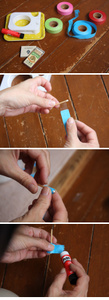 4. テープの終点が来たら、ほぐれないようにのりで貼り付けます。