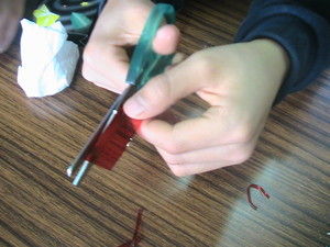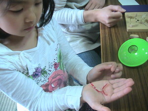 2、すると、あれ?あれ?セロファンが丸まってきました。ふしぎです