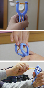 - Y字の的の先端部分に輪ゴムを張ります。