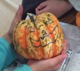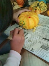 1、かぼちゃにペンで、顔の絵を描きます。