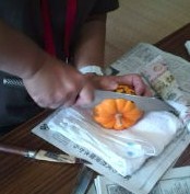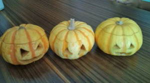 10月31日はハロウィンです。10月に入るとハロウィンの飾りをディスプレイしているお店をよく見かけますね。今回は、かぼちゃおばけ、ジャック・オー・ランタンを作ってみましょう。かぼちゃを刻んで、怖い顔や滑稽な顔を作り、悪い霊を怖がらせて追い払うそうですよ。